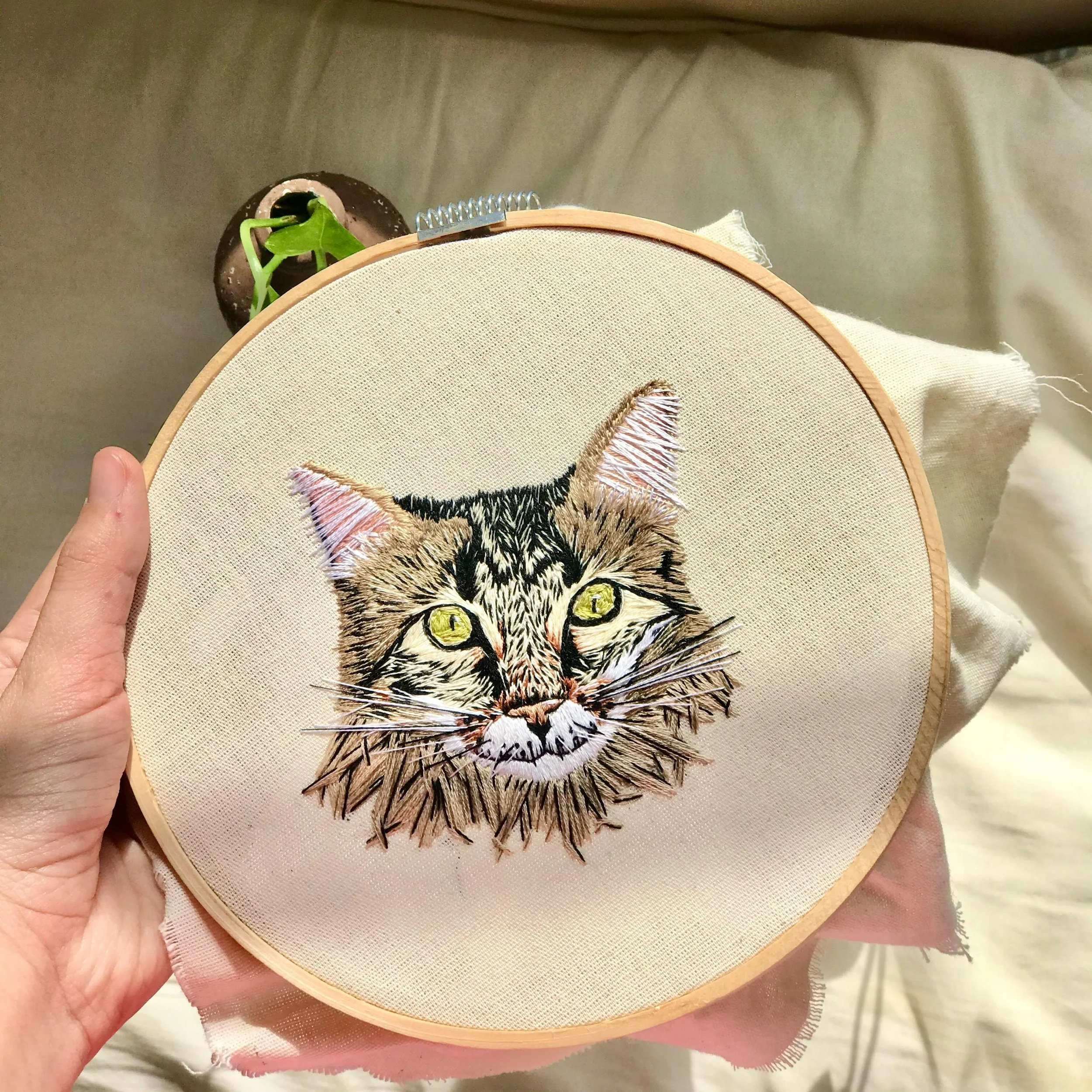 Knitting, crochet, embroidery, cross-stitch, or macramé.